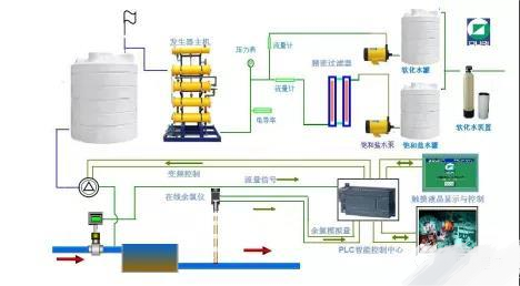 次氯酸鈉消殺方式和氯氣基本相同,消毒副產物和氯氣也基本相同,但所產生的致癌物質要明顯少於氯氣,其來源主要有兩種,一種是成品的次氯酸鈉,一種是電解製備的次氯酸鈉,我國汙水處理廠兩種都有采用,其中成品次鈉有效氯含量較高,為10%,電解次鈉發生器依照有無陽離子交換膜可分為兩種,采用陽離子膜的二氧化氯發生器我國采用的極少,主要為無陽離子膜的二氧化氯發生器,所製取的二氧化氯發生器的濃度均≤1%。
