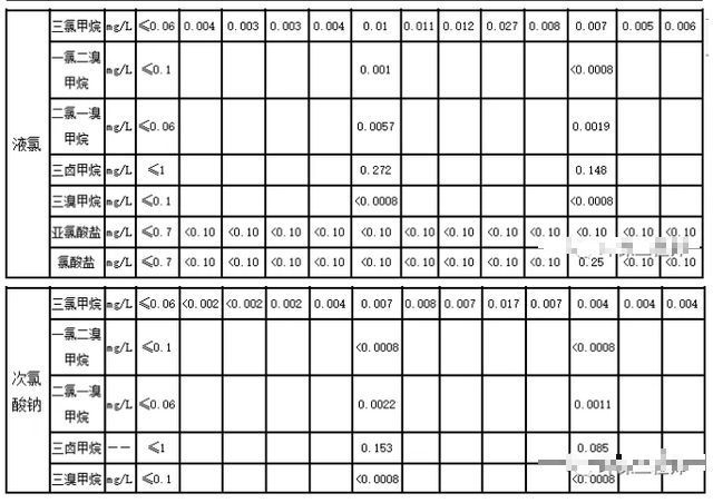 為真實進行對比,抽取某地3個不同水廠(水源同源,三個水廠取水口相差不超過1km)2017年全年檢測數據進行比較(各廠出廠水水質要求均能滿足GB5749-2006規範要求,且出廠水濁度均在0.3NTU左右),如下表2所示(三個水廠草莓视频网站大全投加點均在濾池後,有效氯投加量均在1mg/l左右,表2中一氯二溴甲烷、二氯一溴甲烷、三鹵甲烷、三溴甲烷根據規範要求為半年進行一次分析):
